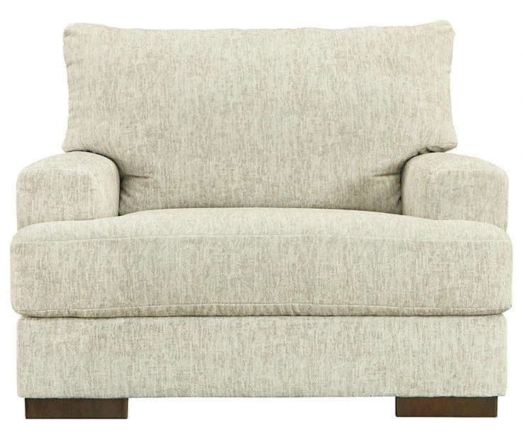 Easy on the eyes and irresistibly comfortable, the Caretti oversized chair is covered in luxurious chenille microfiber in a light, neutral hue that blends beautifully in a room. Wide track arms have a contemporary look and plush cushions cradle you comfortably. Textured accent pillows in complementary colors add subtle contrast.