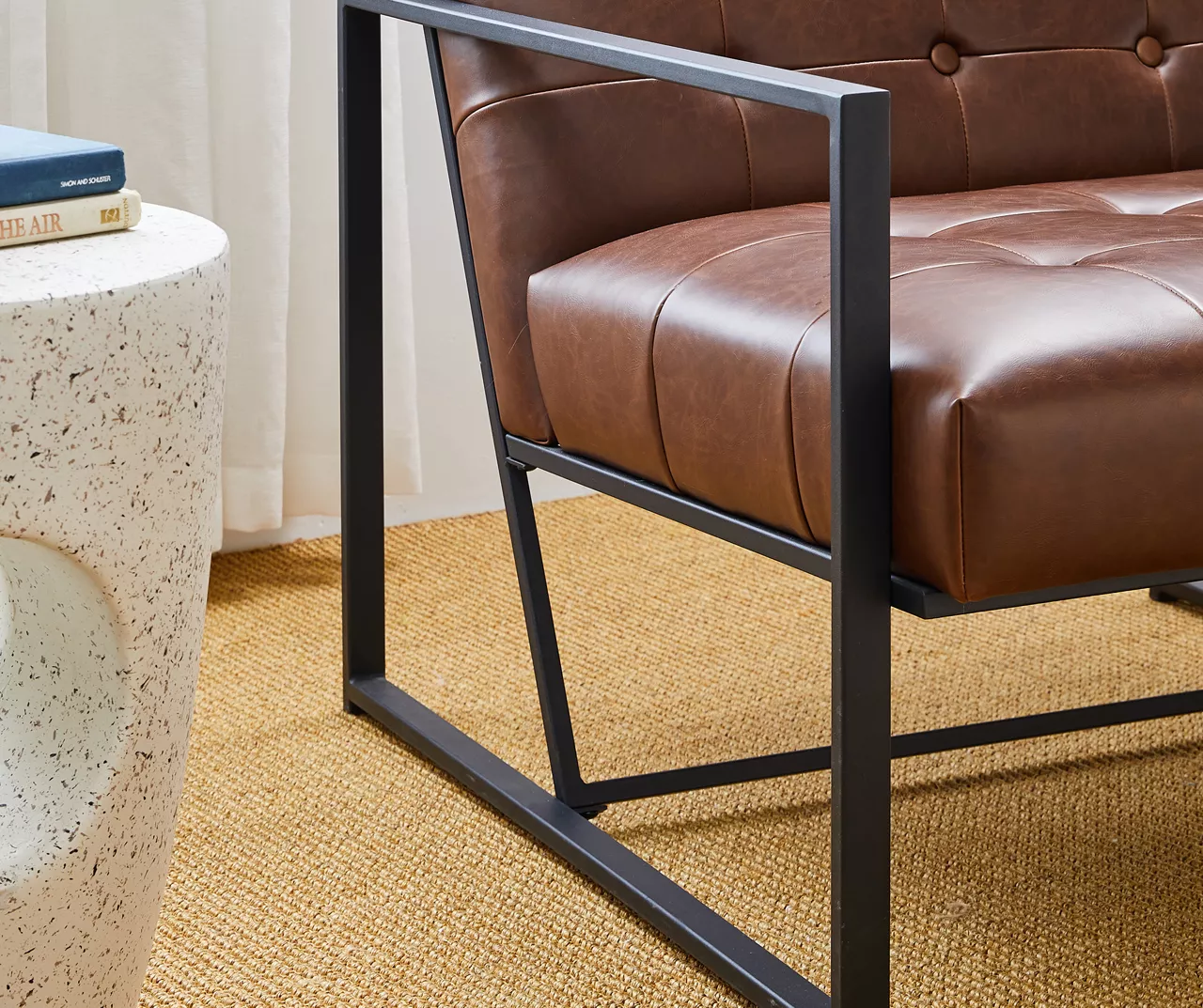 Glitzhome Modern Industrial Faux Leather Accent Chairs, 2-Pack