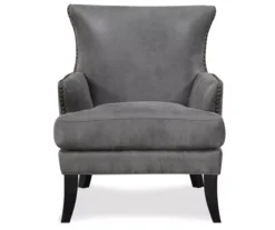 - Suede-like polyester/polyurethane upholstery in a steel gray tone