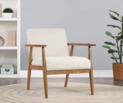 - Classic-meets-modern armchair with roll arms and a corner-blocked frame